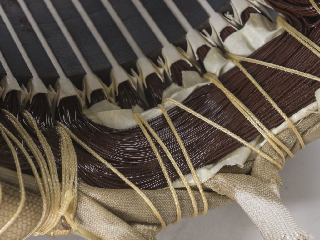 Cтанки для бандажирования обмоток обвязывают лобовые части и группы выводов обмотки статора полиэфирным кордом. Наш метод обвязки надежно охватывает все проводники лобовых частей обмотки и обеспечивает постоянное натяжение корда и равномерность бандажирования.